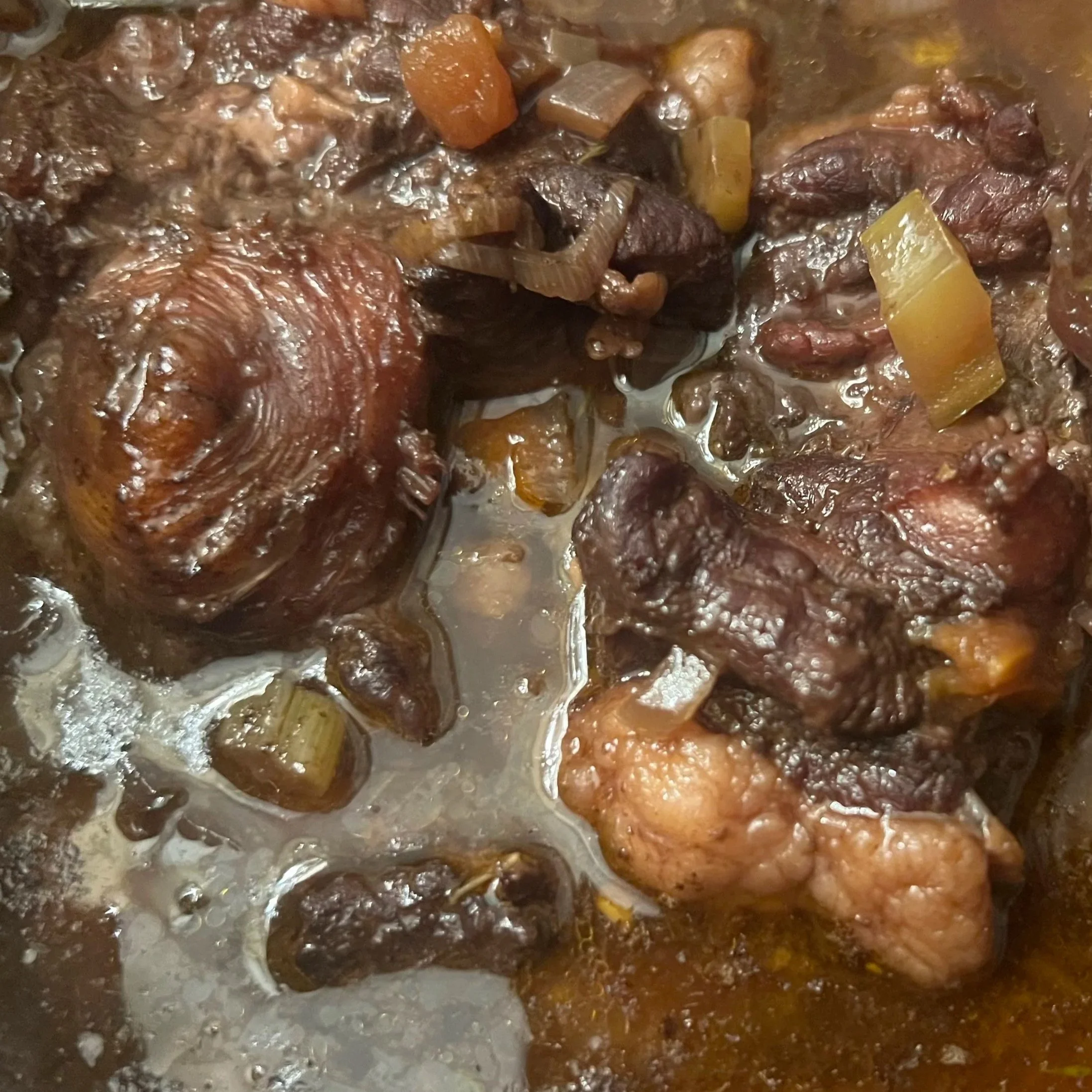 • Sear oxtail for 2 min per side making sure not to overcrowd pot.